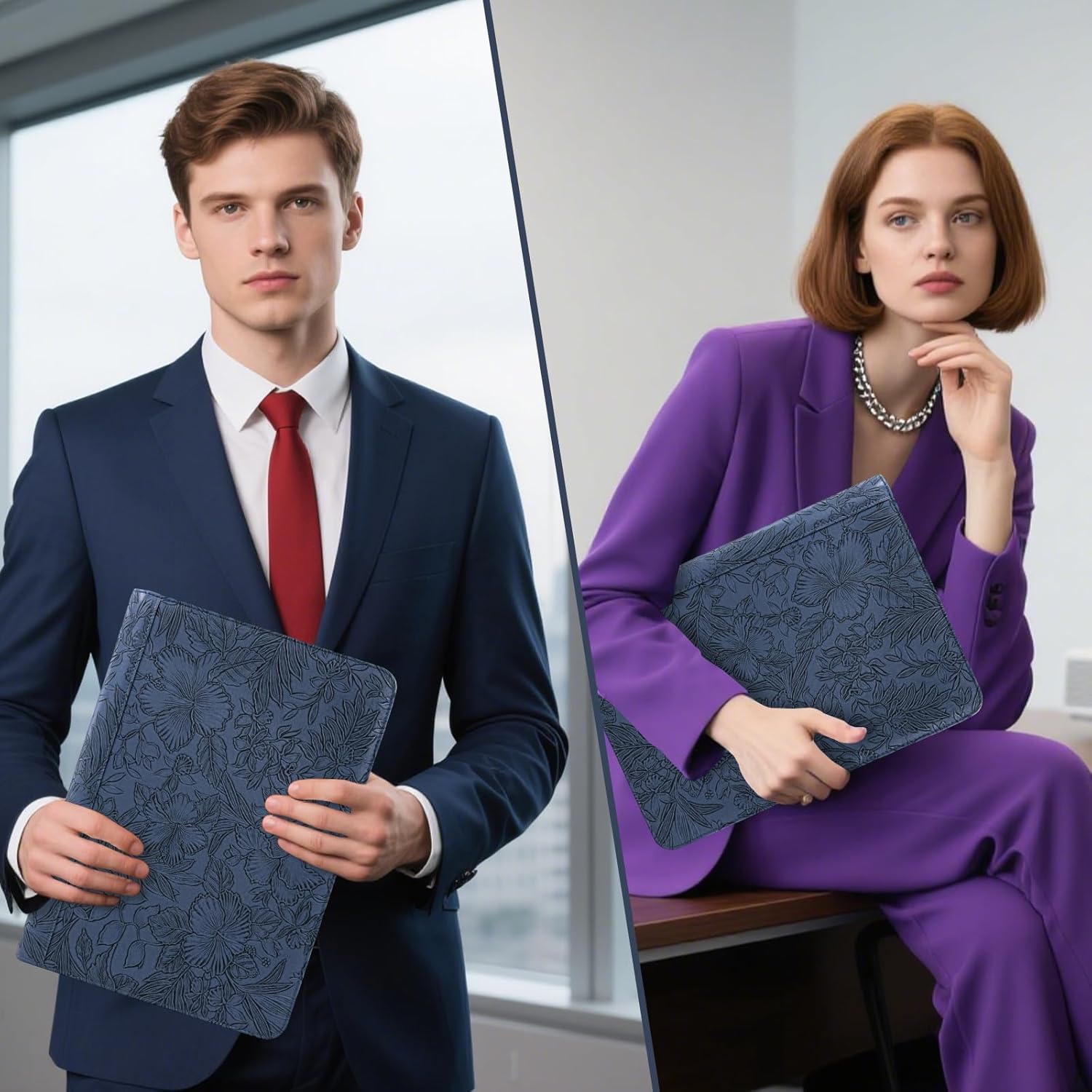 - 【Premium&Stylish-Leather Portfolio Binder】 This personalized portfolio organizer is handmade from leather, waterproof and durable while balancing elegance and fashion. Brown, vintage brown and black portfolio for men are simple and atmospheric. The padfolio for women with rose gold and deep blue print is elegant and exquisite. The Calfinder business portfolio is the perfect gift choice for lawyers, teachers, graduates, employees, and any other professionals.
