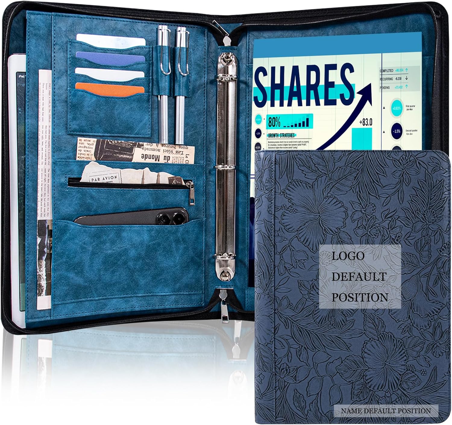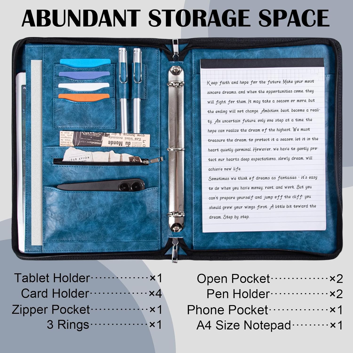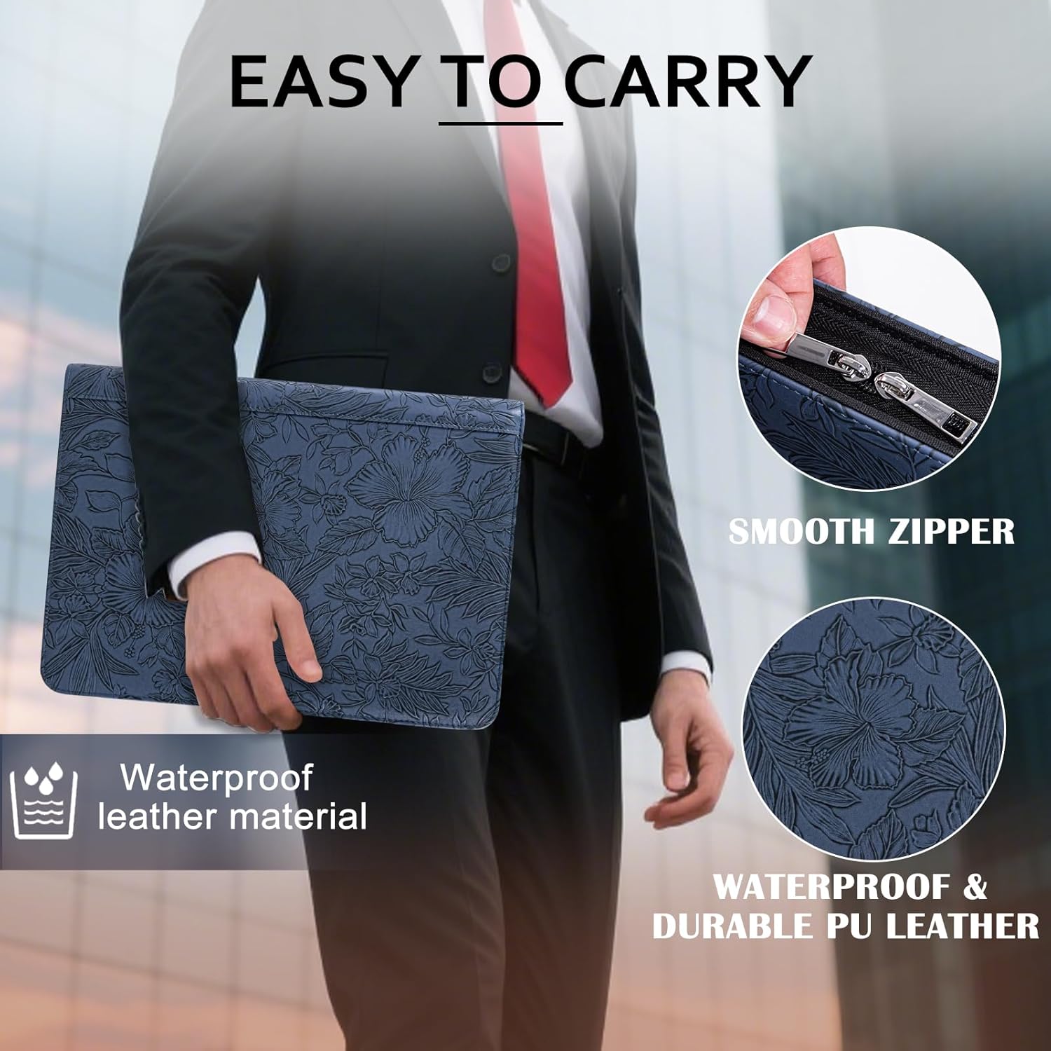 Calfinder Personalized Padfolios Portfolio Binder,3 Ring Leather Binder with Zipper,Professional Padfolios for Women&Men, Business Portfolio Organizer for Resume, Leather Folder for Ipad
