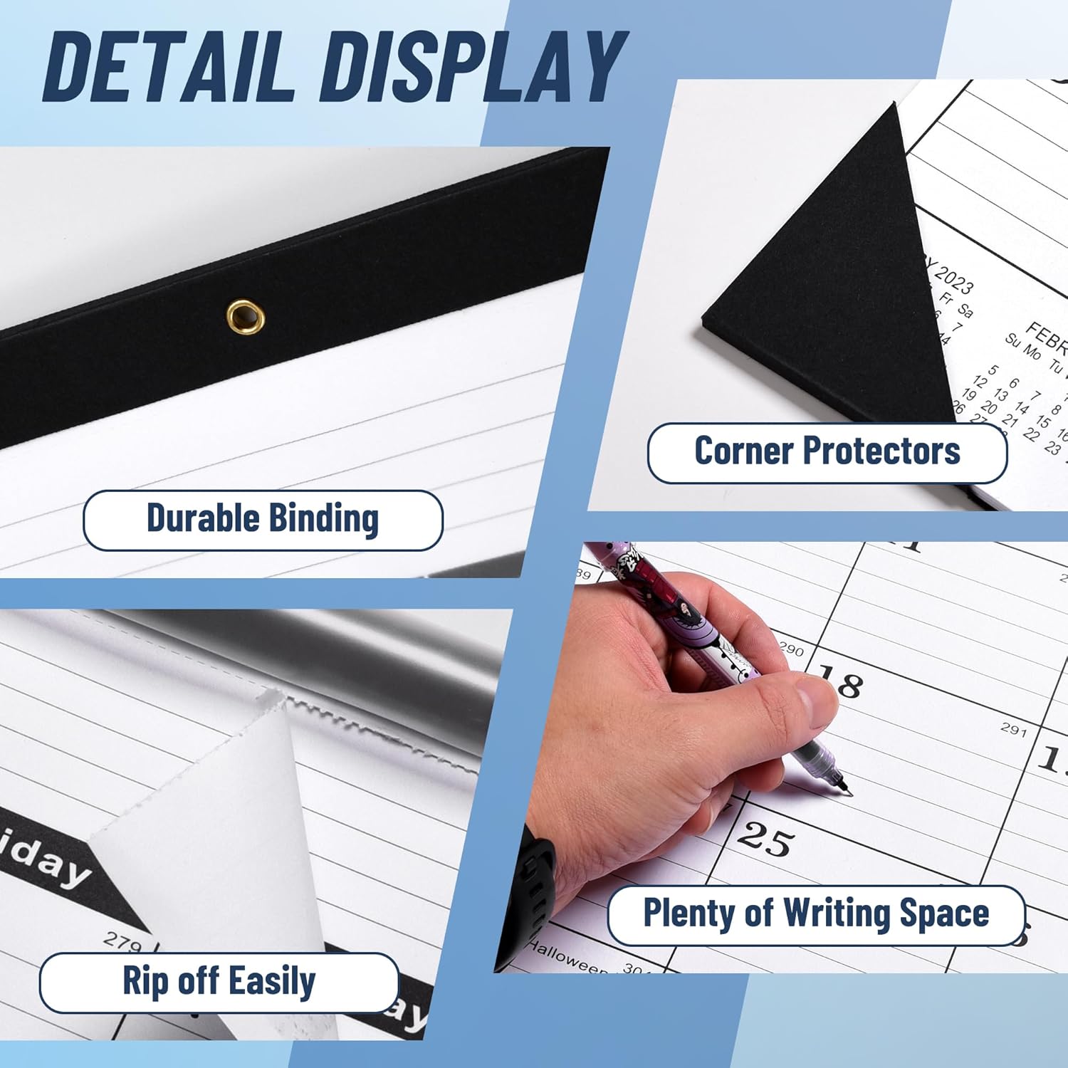 • 🎓CALENDARS--This desk calendar 2026 large 22x17 the first layer of PVC protective film can keep the desk calendar 2026 clean and prevent the calendar from being damaged by overturned water or coffee.Classroom calendar are easy-to-tear cutting lines can be easily torn off.With two black protective corners on the bottom to prevent the big calendar from being damaged.