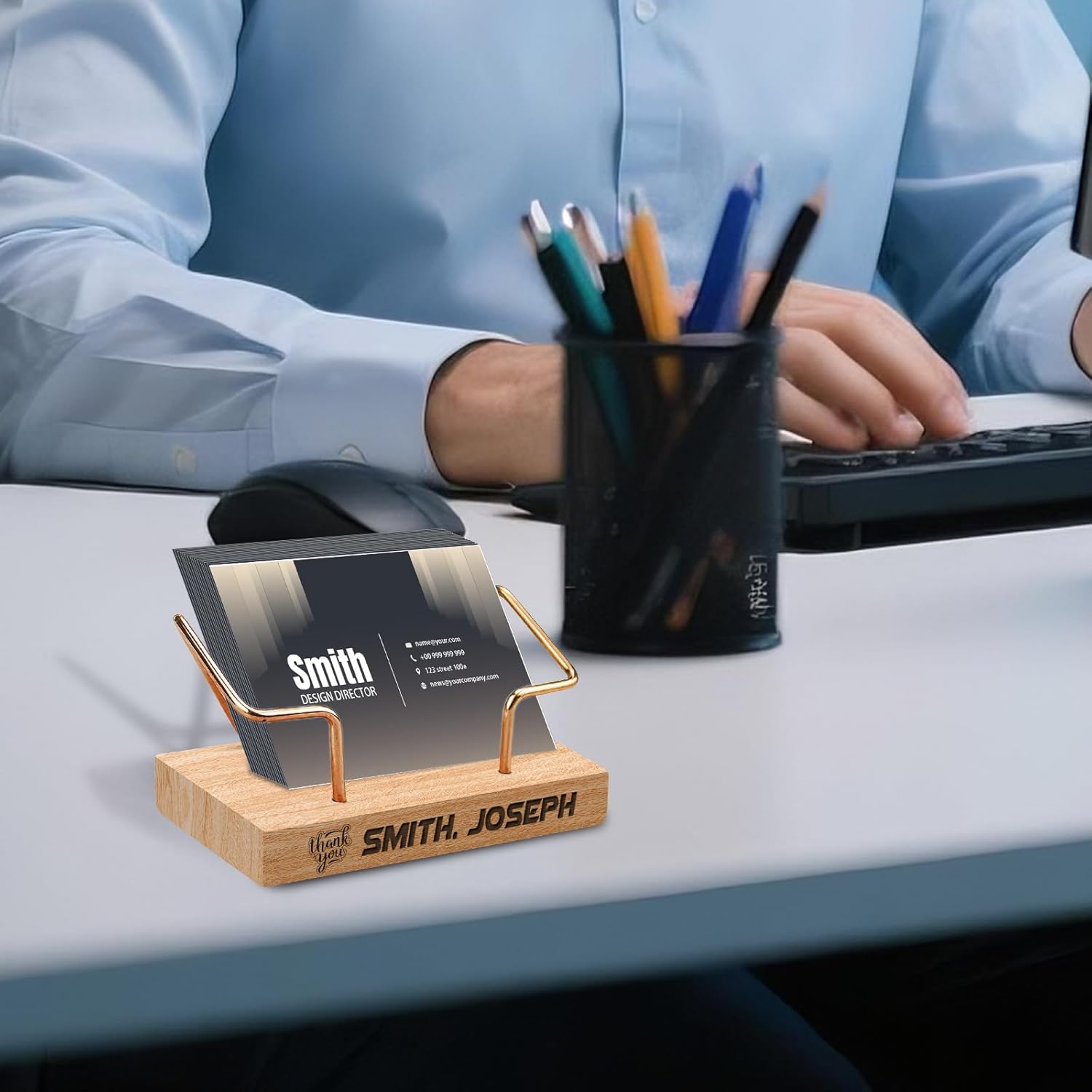 - Materials and Exquisite Craftsmanship:custom desktop business card holder is crafted from quality wood and metal,personalized desk card holder boasts fine laser work.customized business card holder wood is polished for durability,resisting breakage or deformation.
