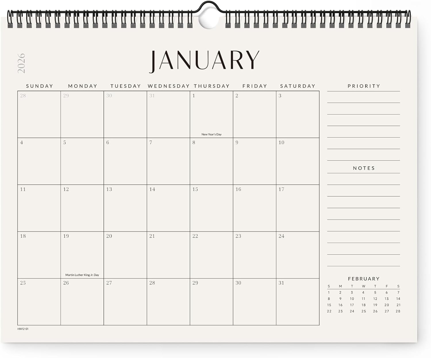 • PREMIUM PAPER & EASY TO USE: Printed on thick, premium paper to avoid ink through, this monthly calendar 2025-2026 provides a smooth writing surface. The sturdy twin-wire binding for easy page-turning