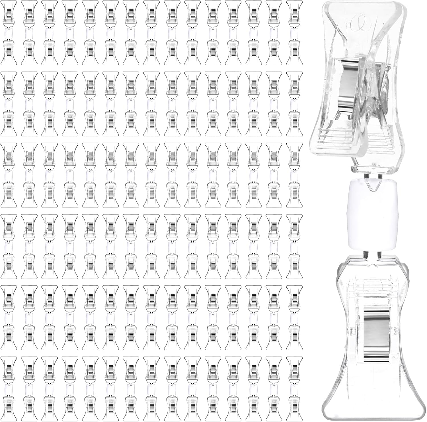 100 Pcs Double Sided Sign Clips - Rotatable Mini Clip Clear Plastic Sign Holder Stand for Label Clothing Business Cards Retail