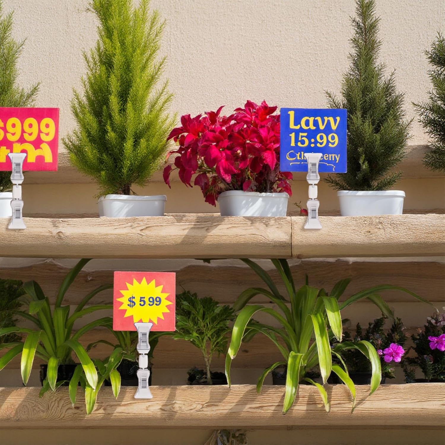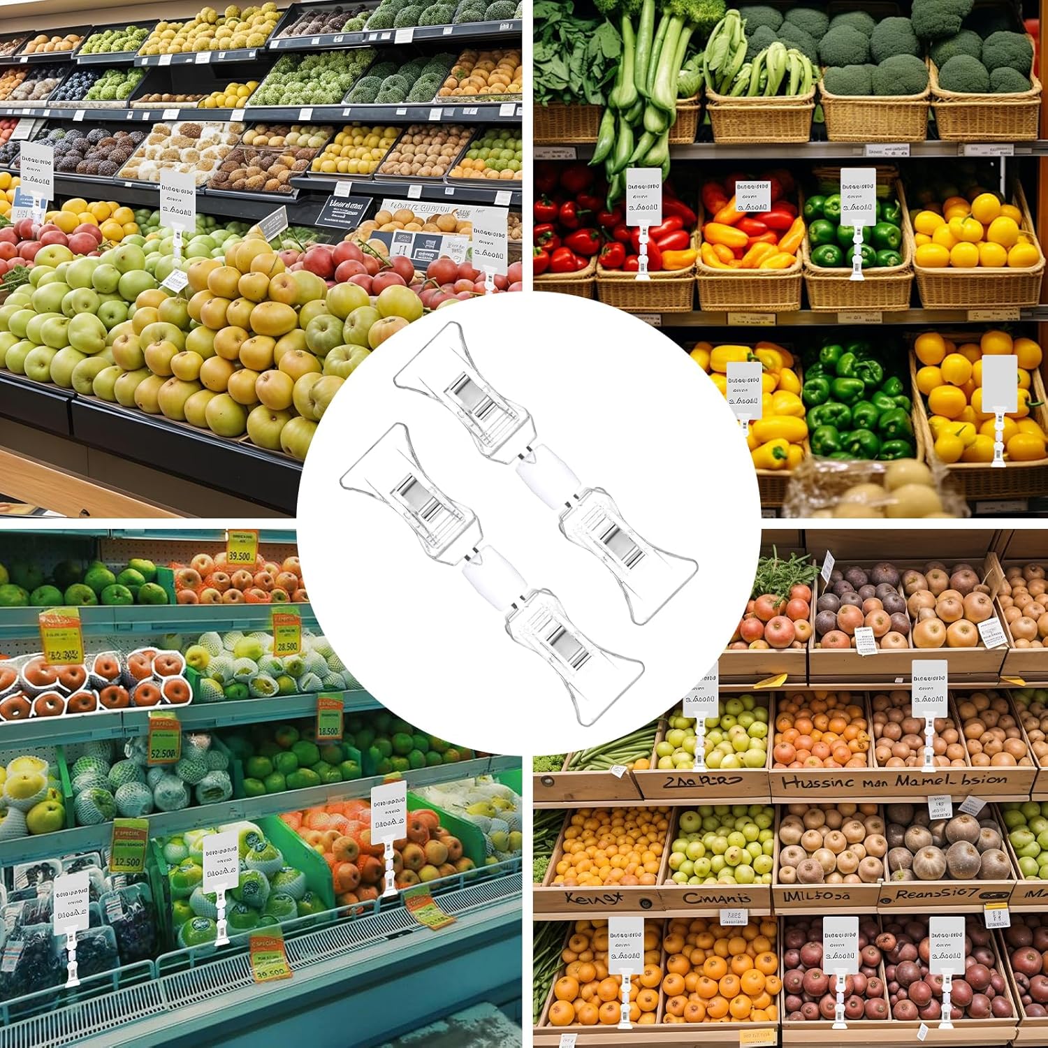 - Practical Display: the rotatable body design of the shelf label holder allows for optimal positioning of the clip, ensuring that the sign is seen, double sided clips are suitable for holding both brackets and signs, making them ideal for price and merchandise displays in stores, supermarkets, and multiple setups