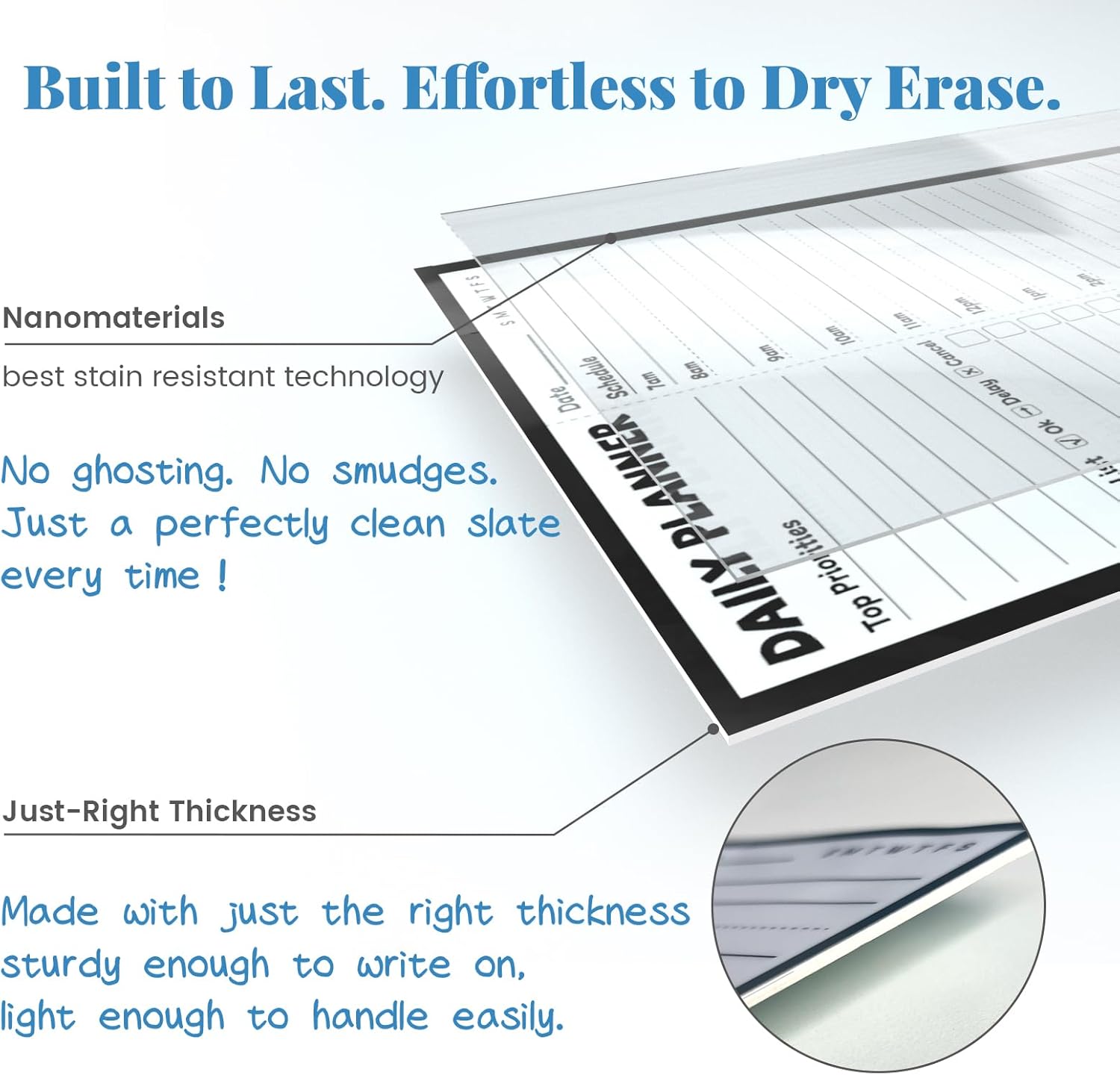 - Easy to Write & Erase: The smooth,dry erase surface of the hourly planner works seamlessly with the black marker, allowing for quick, clean writing and erasing without residue
