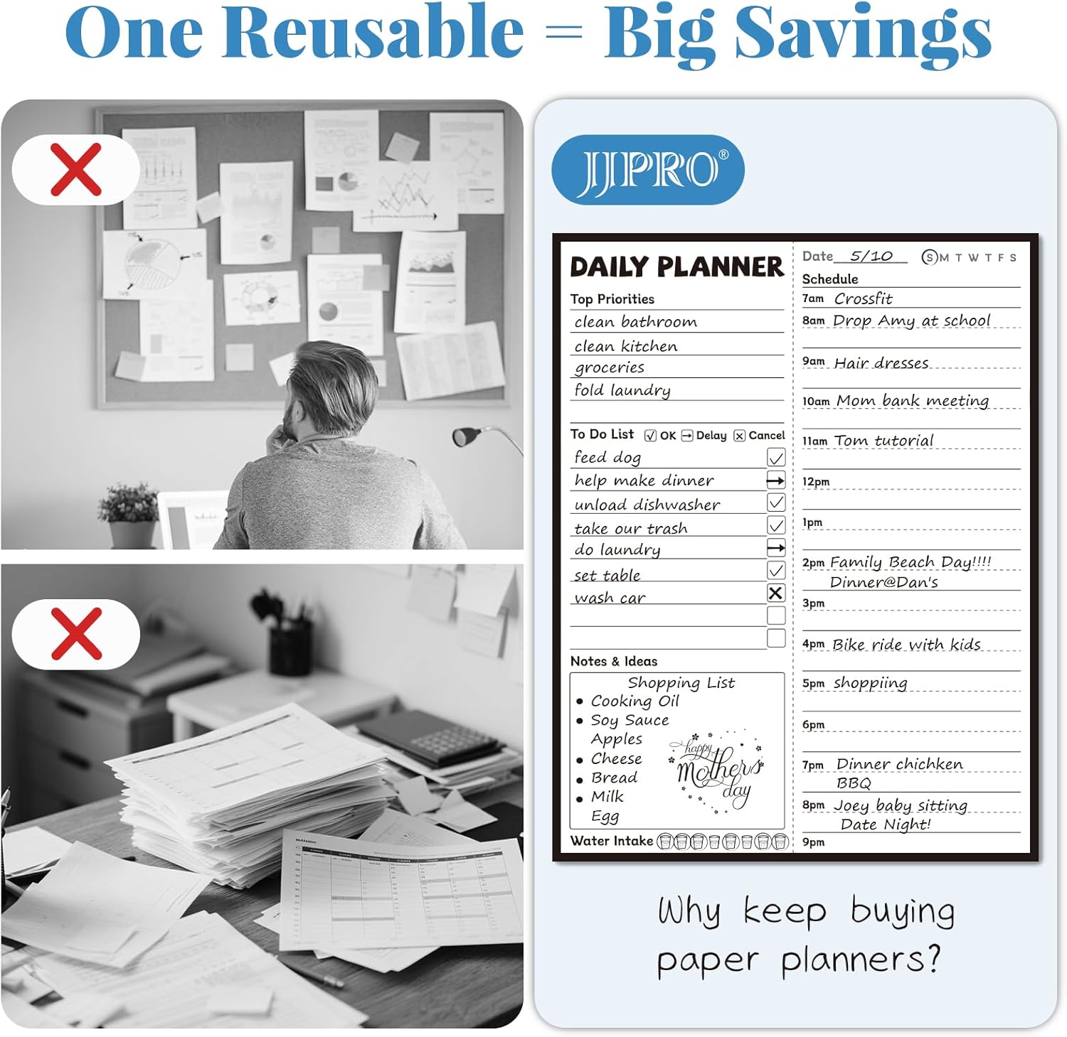 - Reusable Desktop Daily Planner: With a smooth dry erase surface, this reusable desktop hourly planner with time slots is easy to update and reuse every day—no more wasting paper or sticky notes
