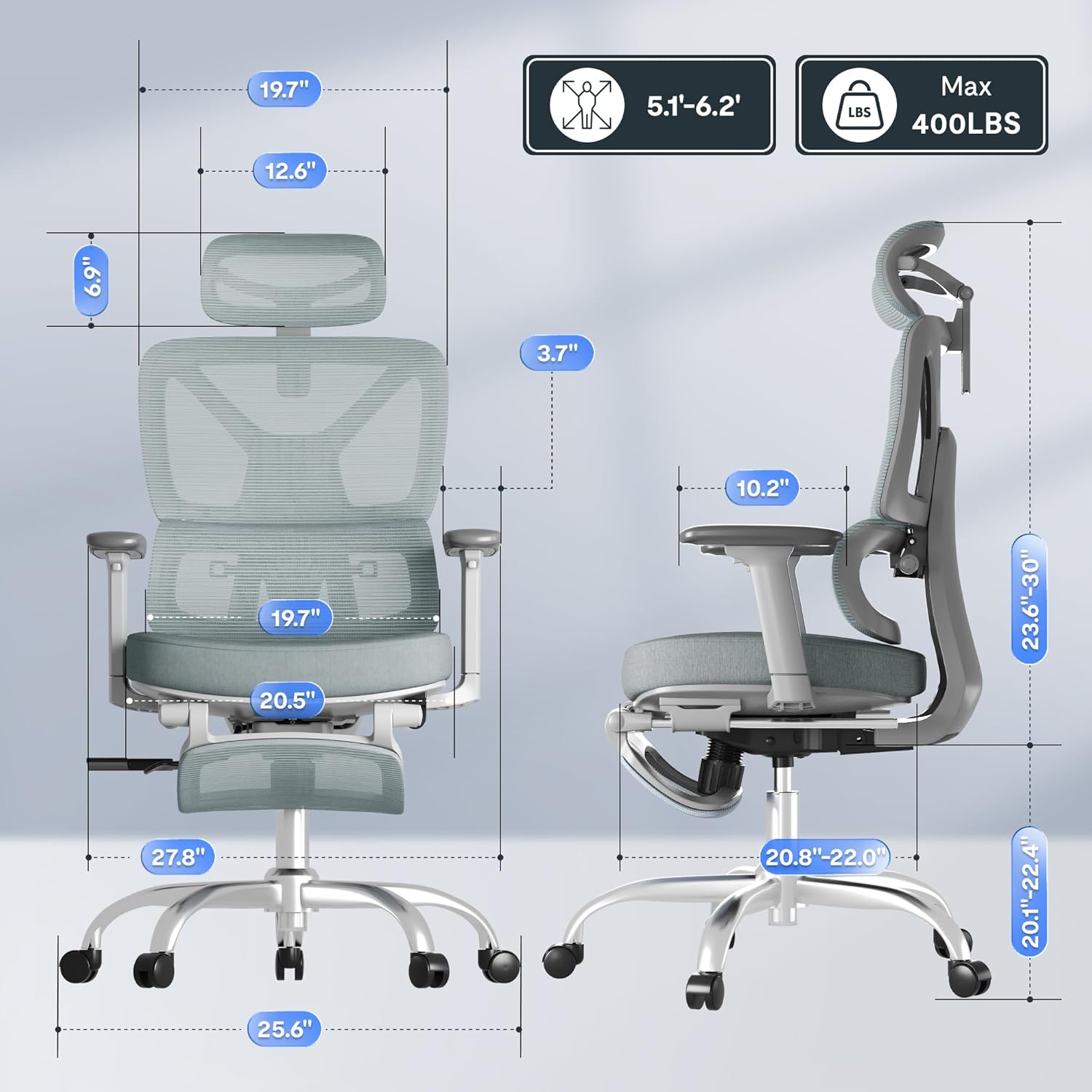 - Enhanced Ergonomics: Dynamic lumbar support, 5-level adjustable back, a 3D adjustable headrest, nap footrest and tilt provide superior back and neck support for long hours.