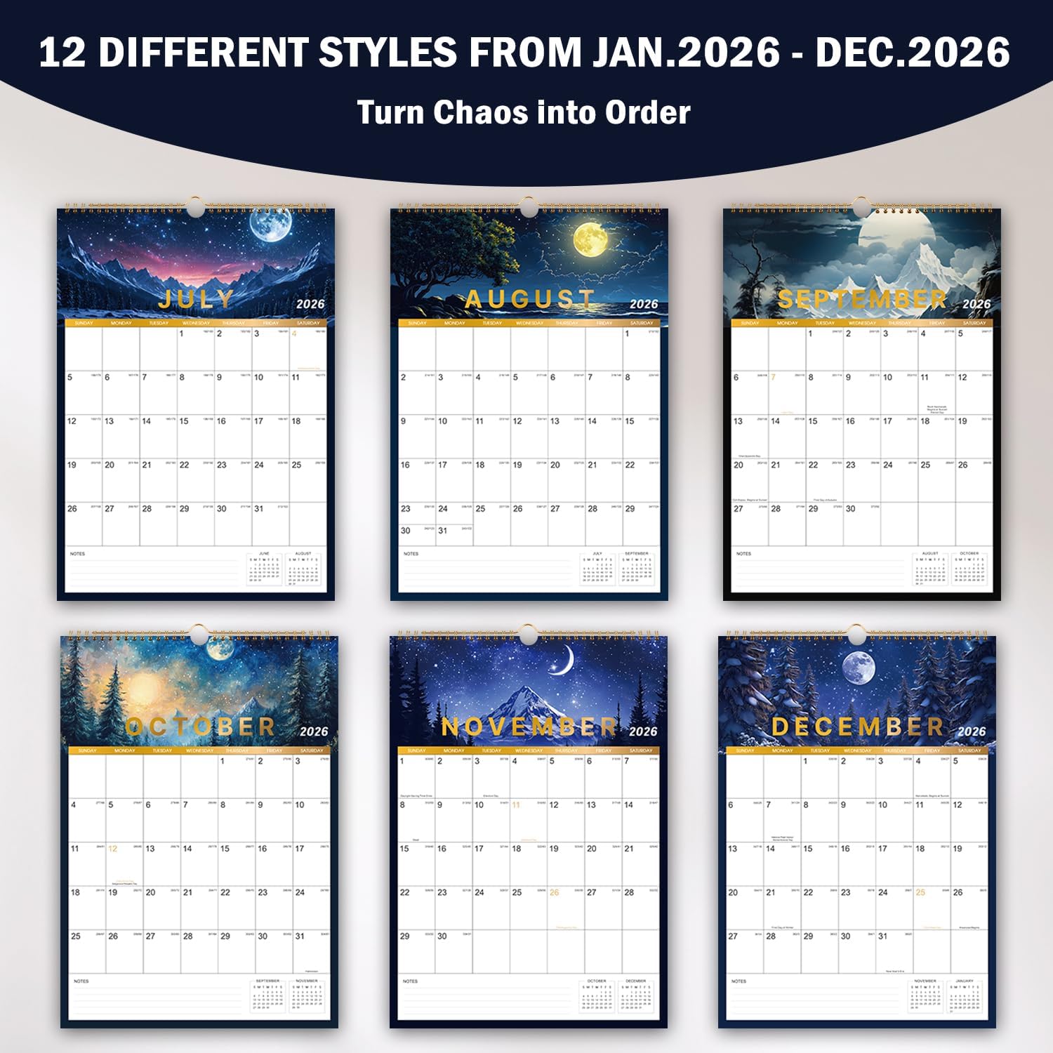 - š² 2026 WALL CALENDAR - This 2026 calendar covers 12 months from January 2026 to December 2026, featuring 12 different patterns, beautiful patterns also be a decoration in your home, the size of this hanging calendar 2026 is 12" x 17", it will accompany you whole year, make your life organization.