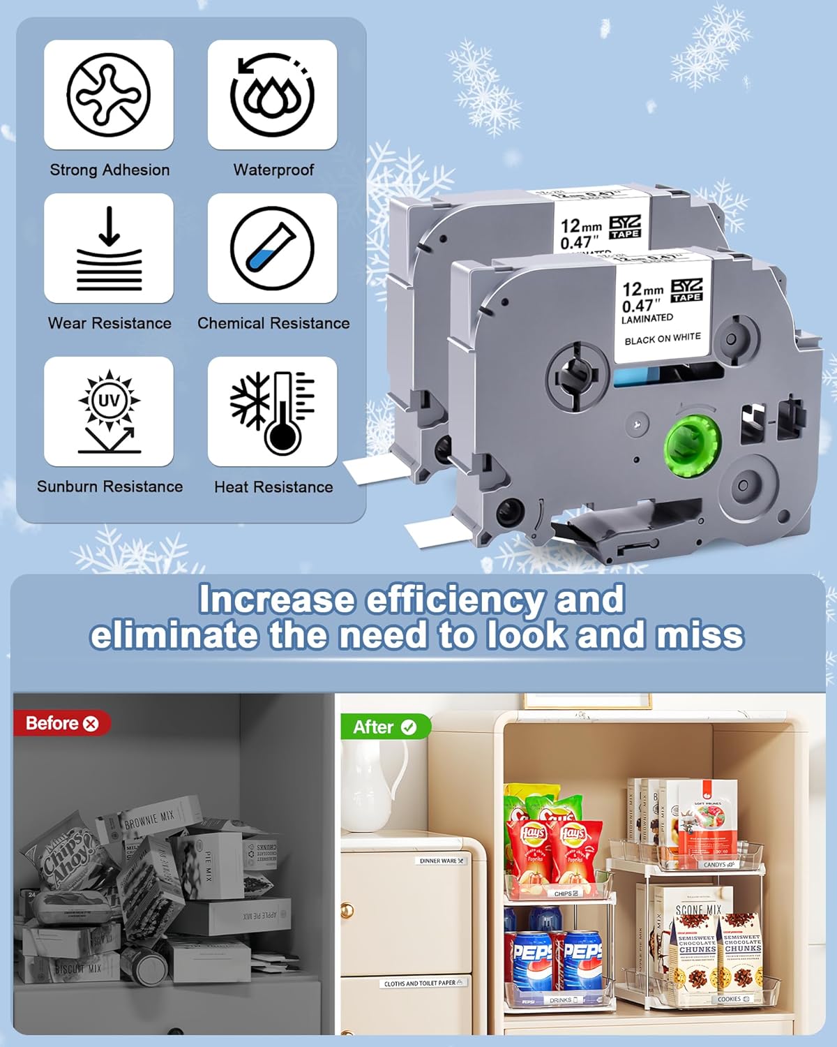 - Compatible with Brother P Touch Label Makers:PT-D220,PT-E310BT,PT-D610BT,PT-H100,PT-H110,PT-H111,PT-E110,PT-D200,PT-D210,PT-E300,PT-P300BT(P Touch Cube)PT-D400,PT-D400AD,PT-D410,PT-D450,PT-D460BT,PT-D600,PT-P700,PT-P710BT,PT-P750W,PT-2730,PT-2730VP,PT-1000,PT-1000BM,PT-1010,PT-1010B,PT-1010NB,PT-1010RPT-1010RDT,PT-1010S, PT-1090,PT-1090BK,PT-1100,PT-1100QL,PT1100SB,PT-1100SBVP,PT-1100ST,PT-1120,PT-1130,PT-1160,PT-1170,PT-1170S,PT-1180,PT-1180SC,PT-1180SP,PT-1190,PT-11Q,PT-1200,PT-1230PC,PT-1280,PT-1280SR,PT-1290,PT-1880,PT-2030,PT-2030VP,PT-2430PC,GL-100,GL-H100,etc