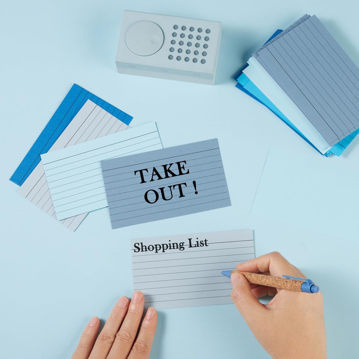 100 Sheets 3x5 Colored Ruled Note Cards Index Cards, 250 GSM Heavy Flashcards, 5 Blue