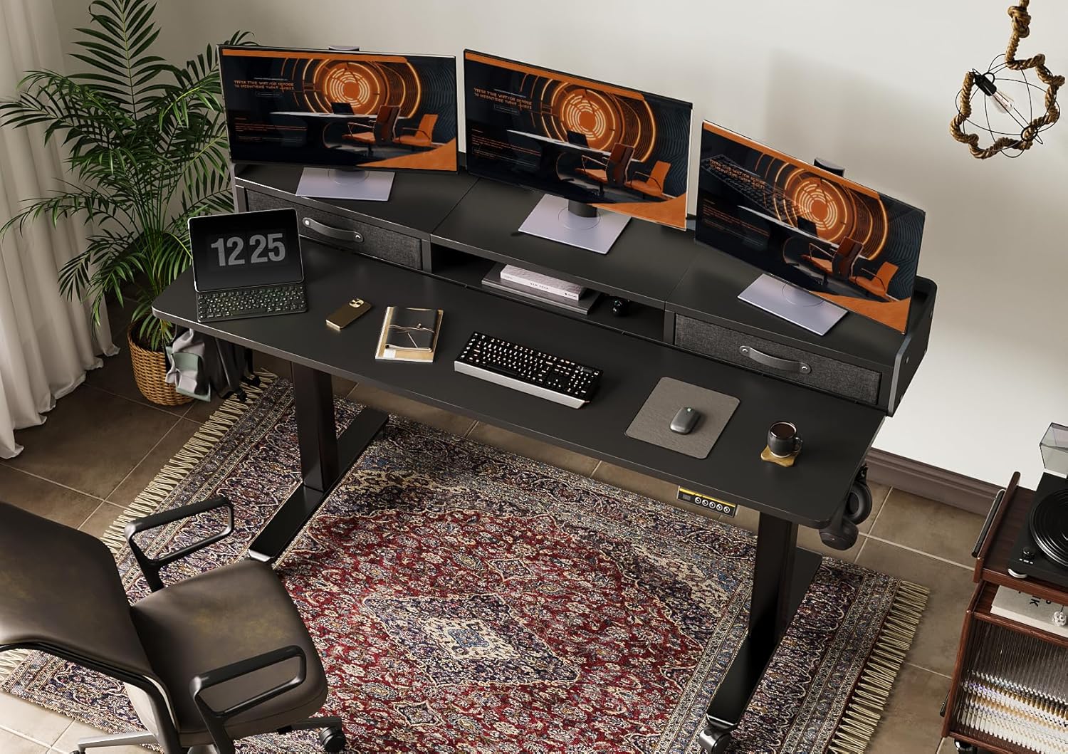 YDN Standing Desk with Drawers, 59 Inch Standing Desk Adjustable Height, Adjustable Electric Stand Up Sit Stand Small with Storage and Shelf, Black