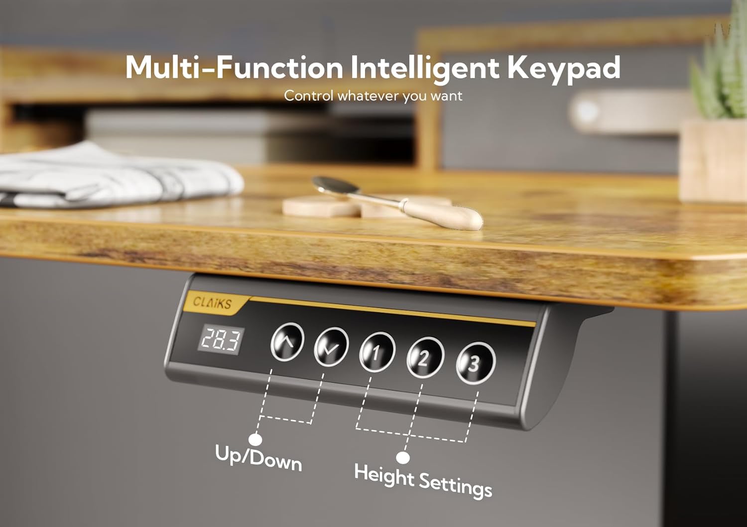 - Smooth Height Adjustment: Freely select adjustable standing desk height, from 28.35" to 46.46". Save your favorite three settings and smoothly switch the electric standing desk between them.