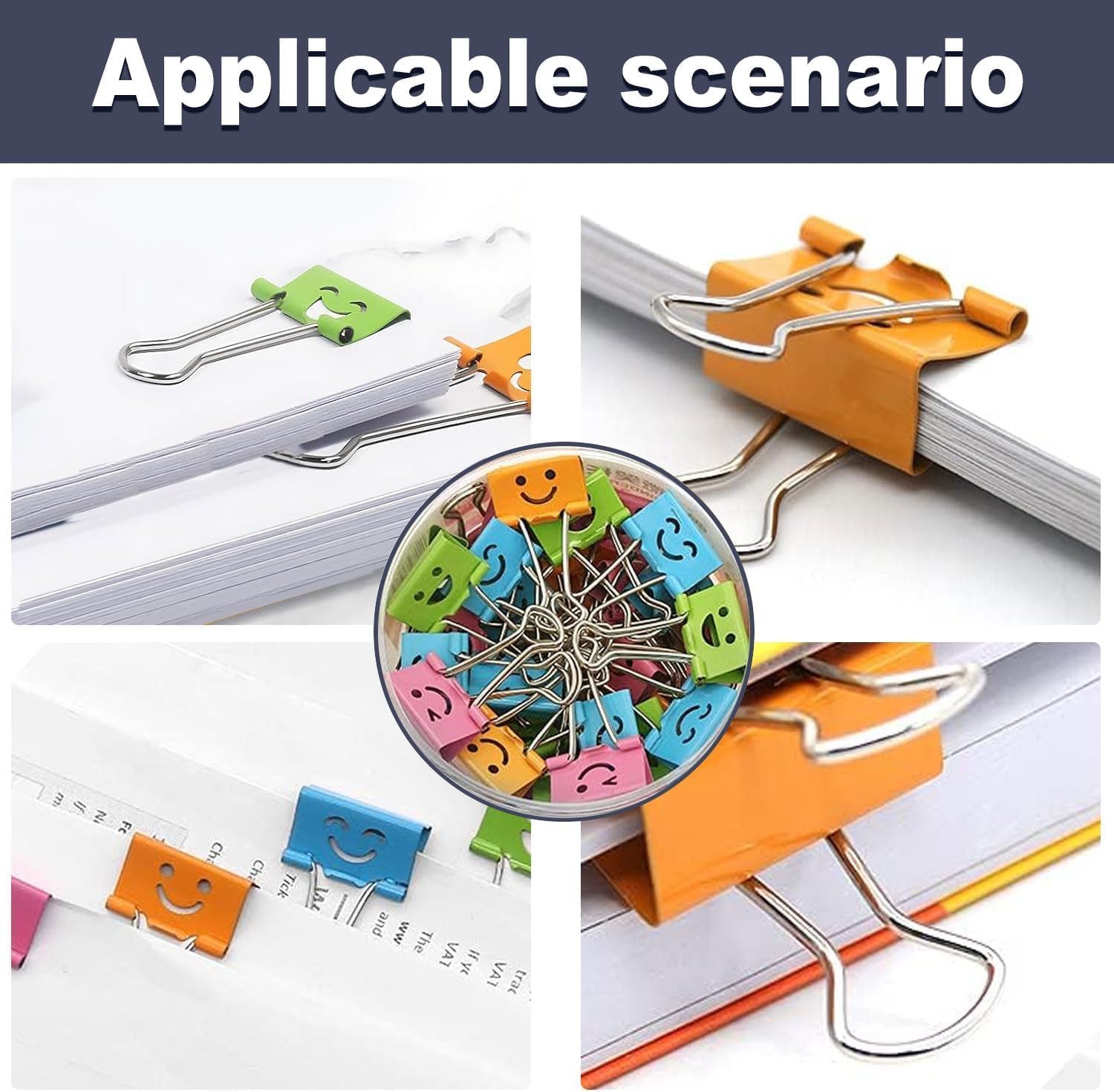 - 【MULTIFUNCTION】These Colored Binder Clips Are Perfect For Home, Office And School. They Can Securely Hold And Bind Papers And Documents, Use Them To Save, Organize And Categorize Notes, Memos, To-Do Lists And Files. They Can Also Be Used To Seal Bags Of Chips, Candies And Cookies, And To Hang Photos And Postcards.