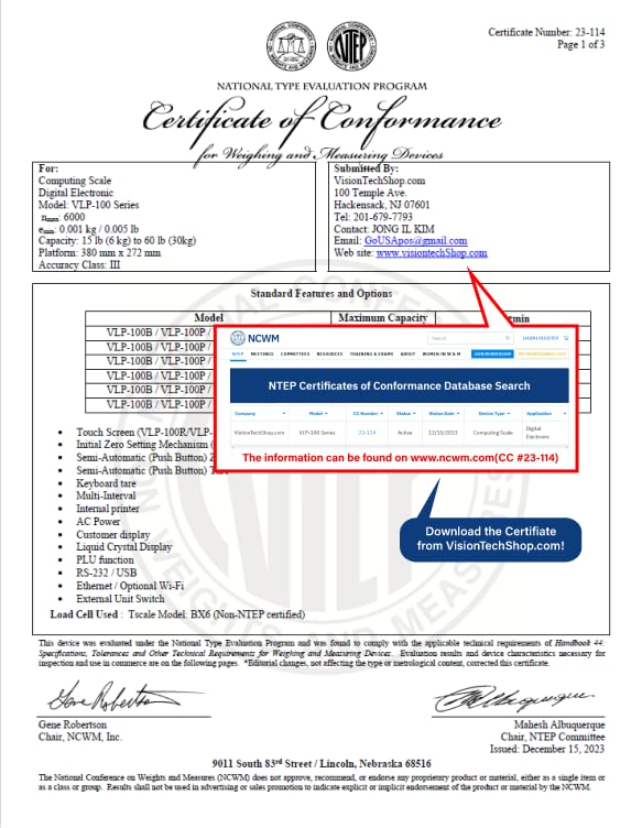 VisionTechShop VLP-100B Label Printing Scale, Capacity 30/60lb Readability 0.01/0.02lb, NTEP Legal for Trade, (Chinese Option)
